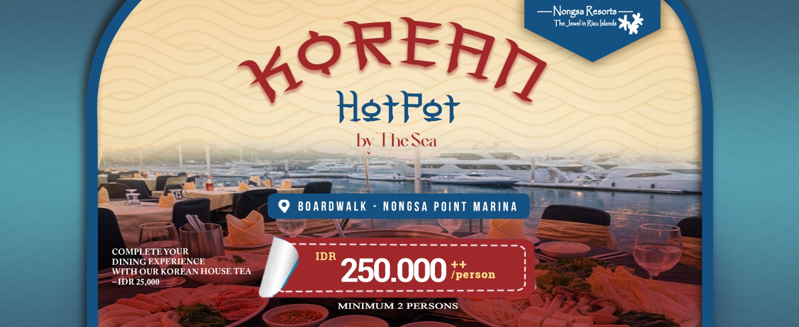 We are delighted to announce the launch of our Korean Hotpot experience at Boardwalk, available at IDR 250,000++ per person (minimum 2 persons). This special promotion will be held every 2nd and 4th week of the month, starting this month.