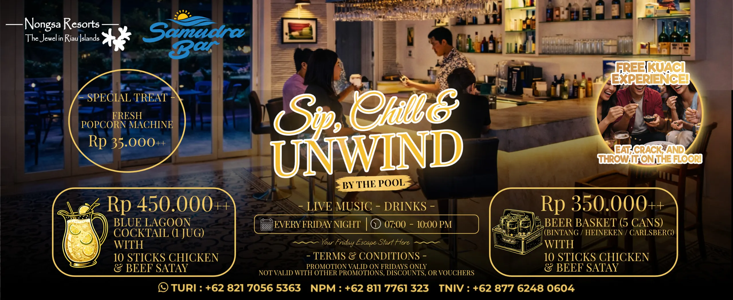 Every Friday, 7–10 PM — it’s all about good vibes, tasty bites, and fun drinks. Free Kuaci Experience — eat, crack, and toss the shells on the floor, just like the classic bar culture!